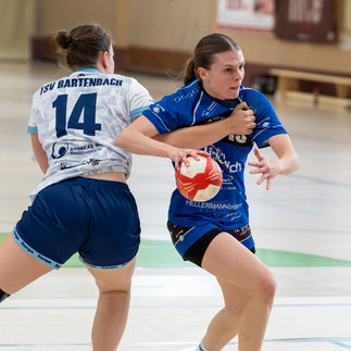 Die Wichtigkeit des Spiels spiegelte sich in den ersten Minuten durch einige technische Fehler beider Teams wider. Der Ballbesitz wechselte beinahe im Sekundentakt, wobei erst in der 4. Minute das erste Tor des Spiels zugunsten der Gastgeber fiel. Doch auch die Hummeln fanden endlich ins Angriffsspiel und netzten kurz darauf durch Nadine erstmals ein. Trotz körperlicher Unterlegenheit spielten unsere Damen eine wirklich solide Abwehr und unterbrachen nicht selten das schnelle Spiel der Bartenbacherinnen. Durch die mangelhafte Chancenverwertung im Angriff ließ man dennoch einen Zwischenstand von 6:3 in der 17. Minute zu. Zwar kämpften sich die Hummeln bis zur 25. Minute wieder auf ein Tor heran (7:6), mussten dann aber – aufgrund einer Disqualifikation von unserer Amelie – in Unterzahl spielen und zusätzlich zwei 7-Meter einstecken. Mit einem Halbzeitstand von 10:6 ging es in die Kabine. Eins war klar: Abwehr top, Angriff flop!